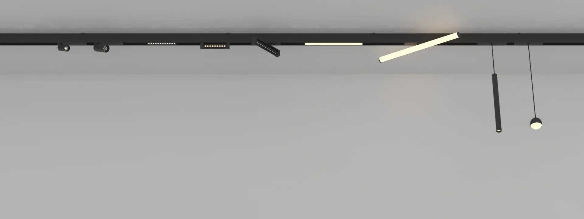 1.The main magnetic lamps on the market include grille spotlights, linear floodlights, adjustable folding spotlights, track spotlights, and pendant lights. Each luminaire is a modular design that can be added, removed, and moved on the track at will.According to different environments, different scenes, DIY to set different atmosphere.To meet the lighting needs of different Spaces and the freedom of lighting design.